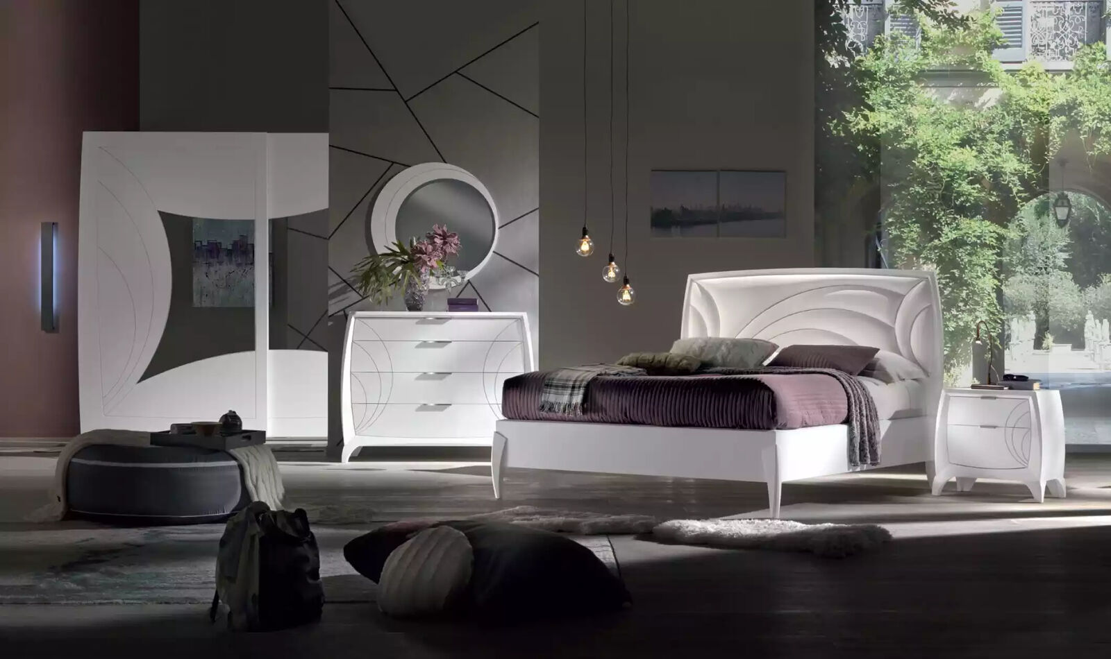 Bedroom Set Bed 2x Bedside table Wardrobe 6-piece design luxury