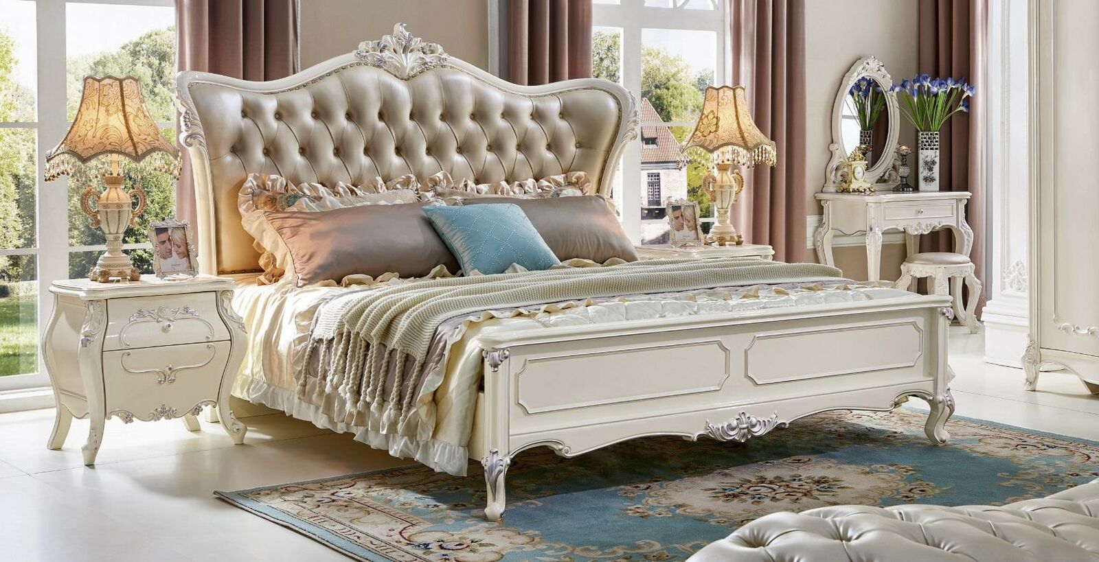 6pcs. Bedroom Complete Set Bed Bedside table Dressing table Solid wood