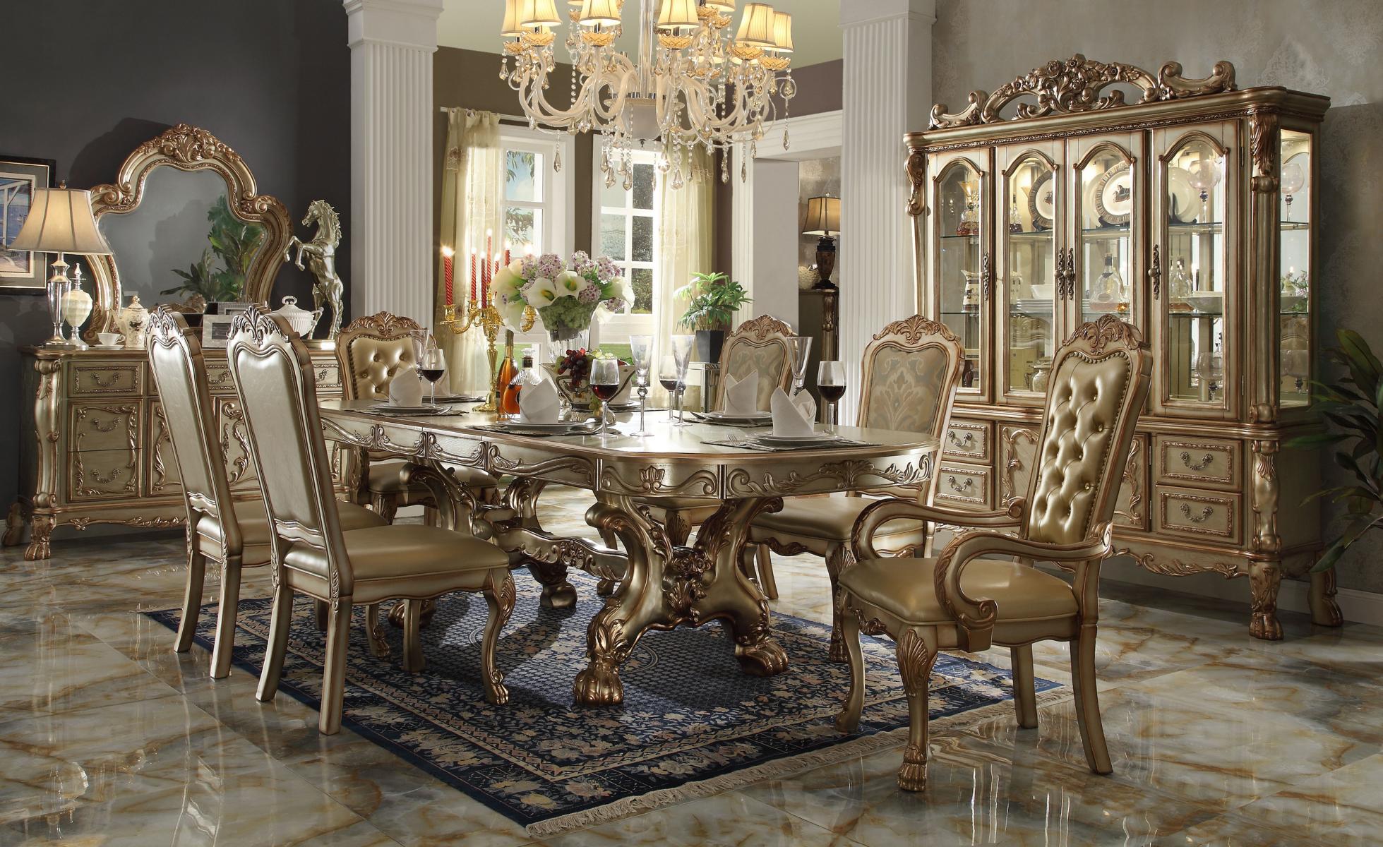 Classic r Dining table Luxury Chesterfield Chairs Designe Dining room set 9 pieces.