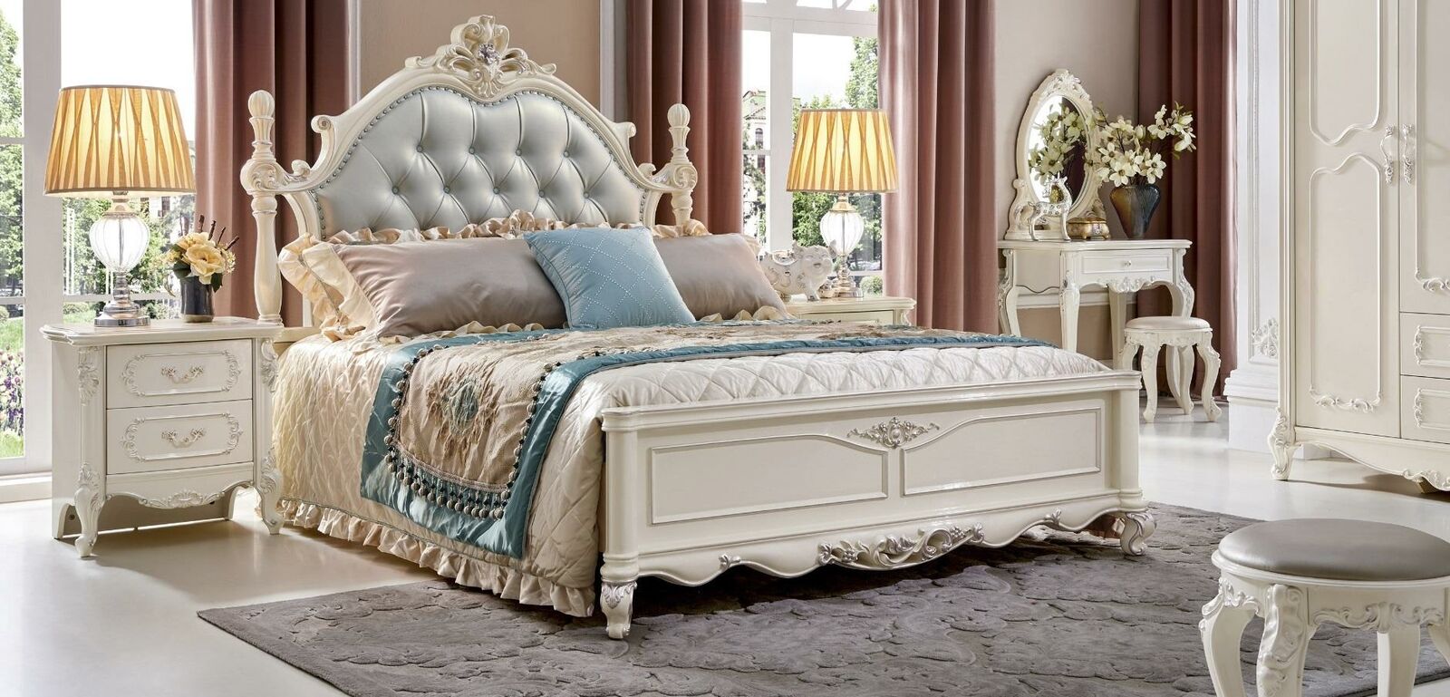 Classic s Bedroom Set Bed Beds Furniture Solid wood 2x Bedside table 3pcs
