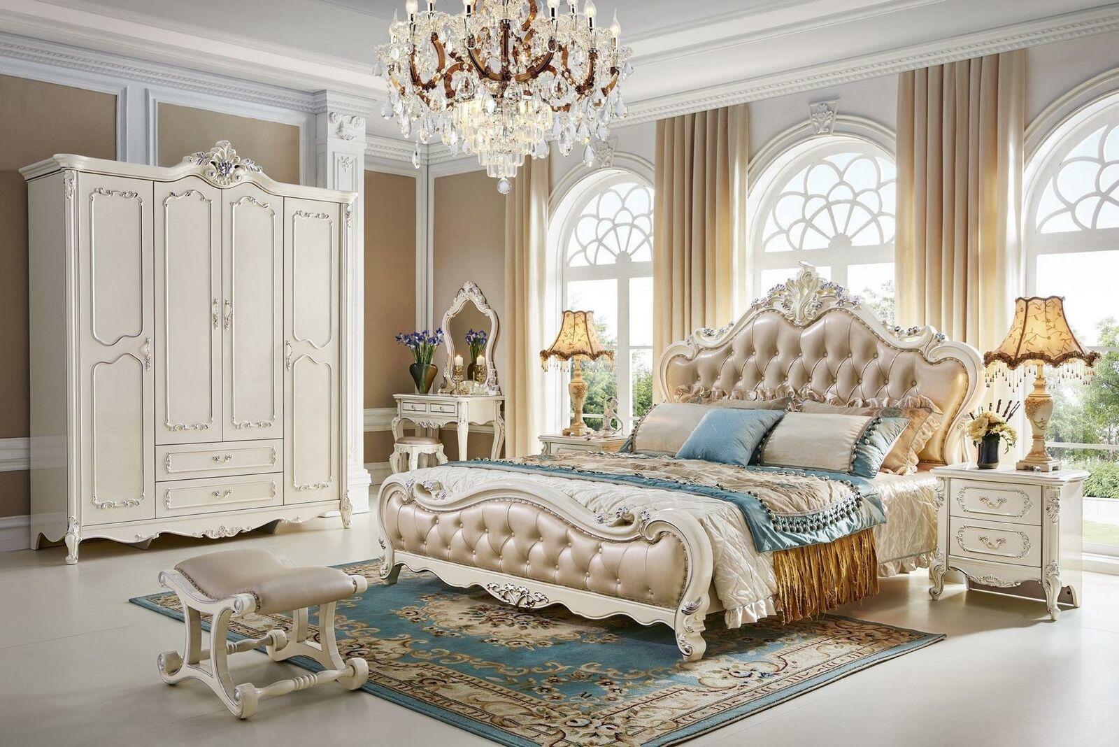 Luxury Bedroom Bed Double Upholstery Chesterfield Hotel Beds Solid wood