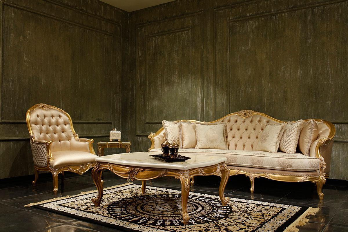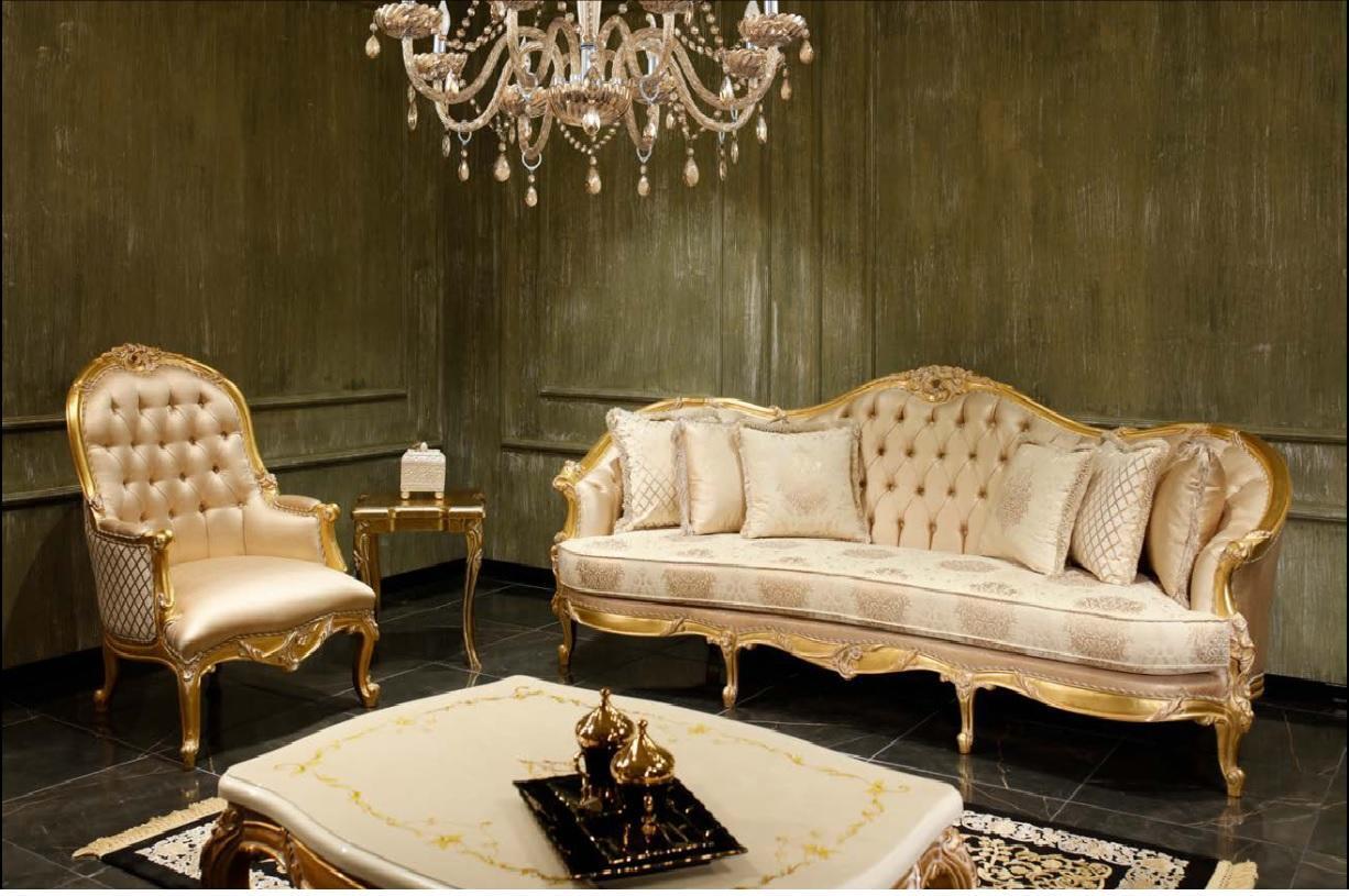 Beige Living room Chesterfield Sofa set Classic r 3-Seater Armchair