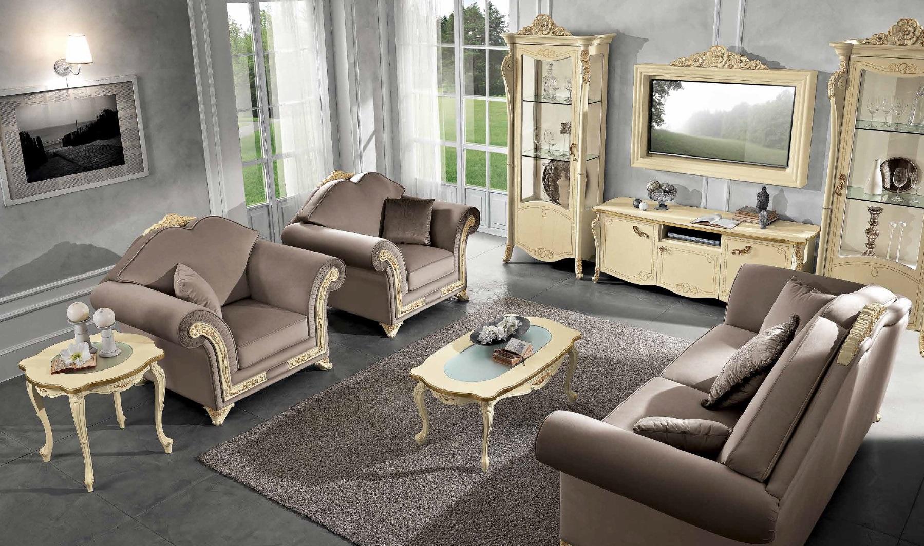 Living room Set Sofa set Wood Living room Classic Design Italy Set 9 pieces.