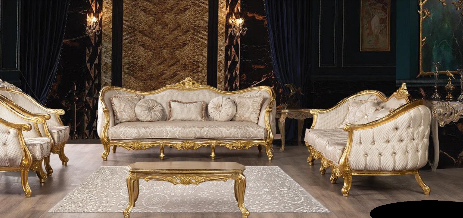Sofa set 3+3 Seater Sofa Sofas Armchair Seat Suite Fabric Living room Baroque