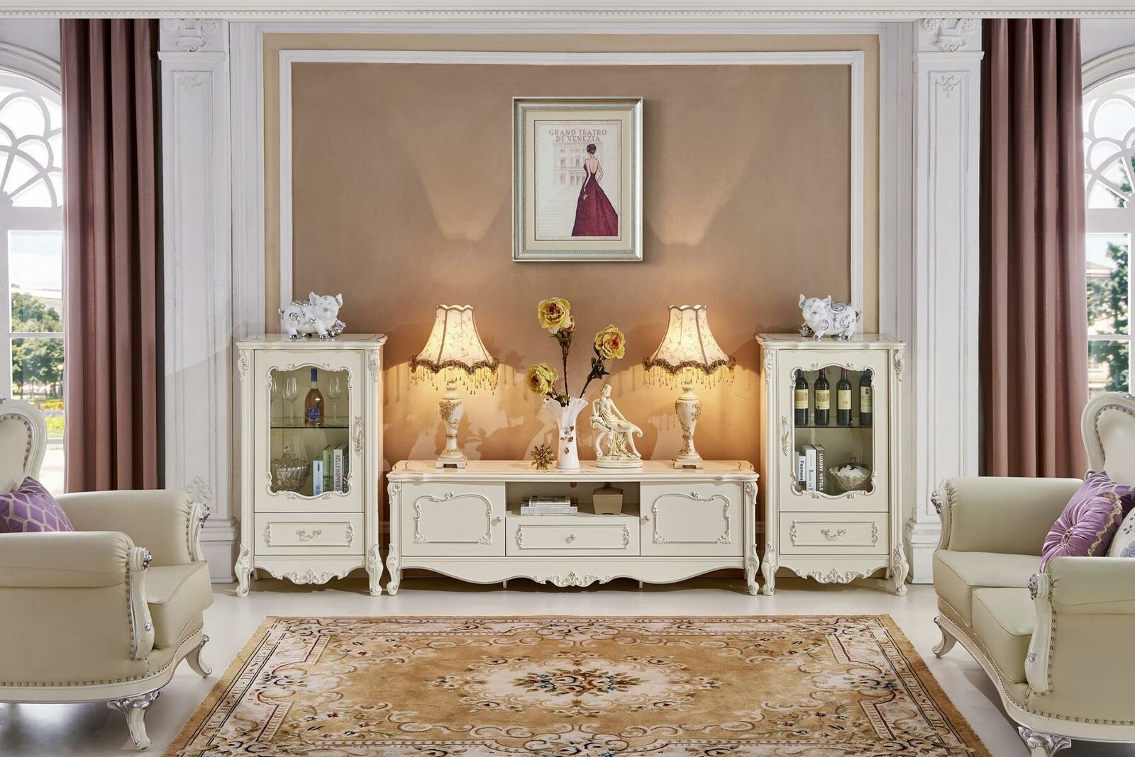 Classic Living room Furniture White Wood Showcase Gold Display case Wardrobe
