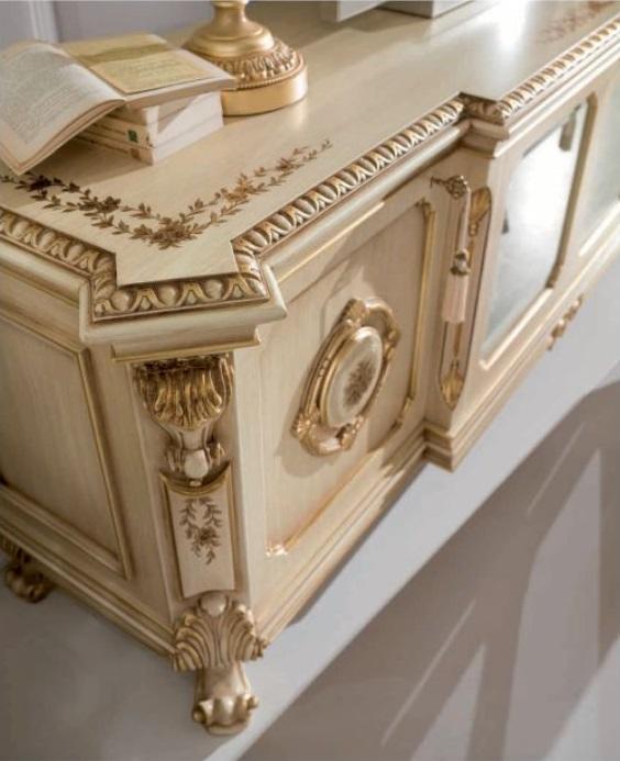 TV-cabinet Lowboard TV Stand Sideboard Wood Table Beige Living room Baroque
