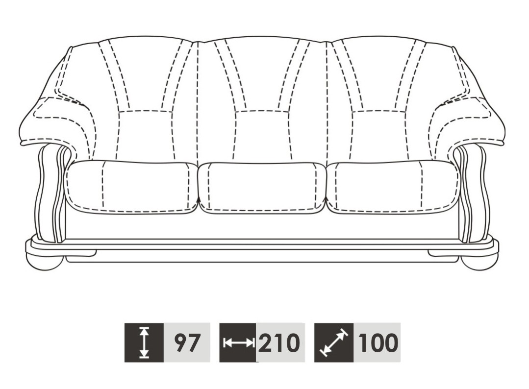 3 Seater : 210 x 97 x 100 cm