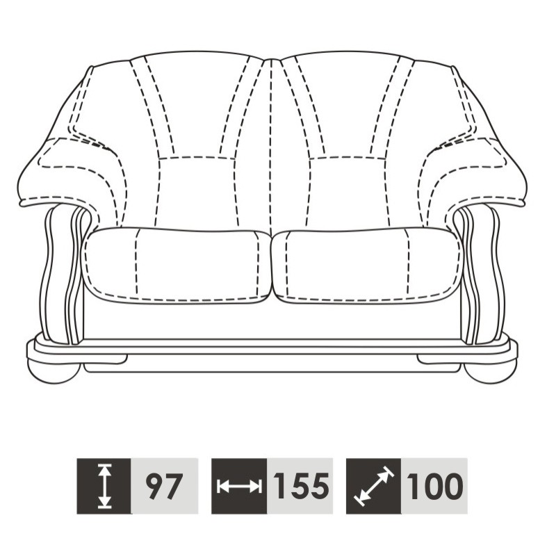 2 Seater : 155 x 97 x 100 cm