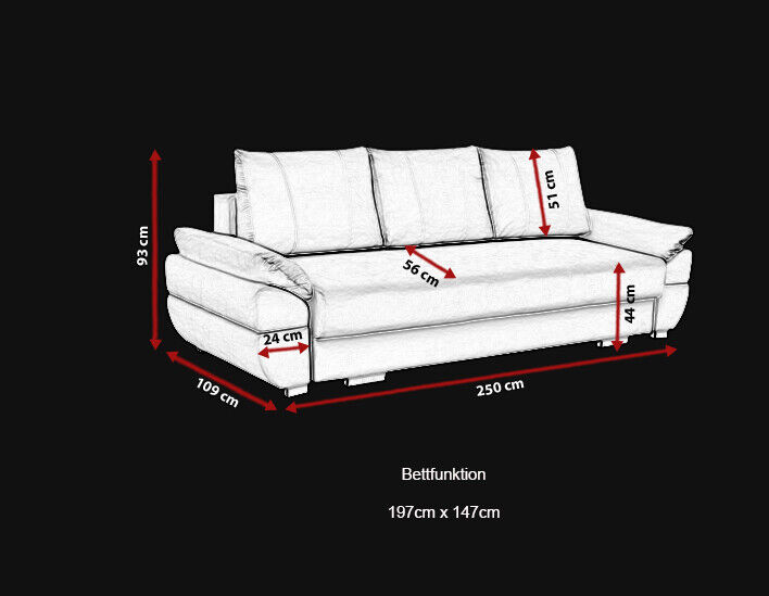 3-Seater Sofa bed with folding couch and sleeping function INCLUDED bed base