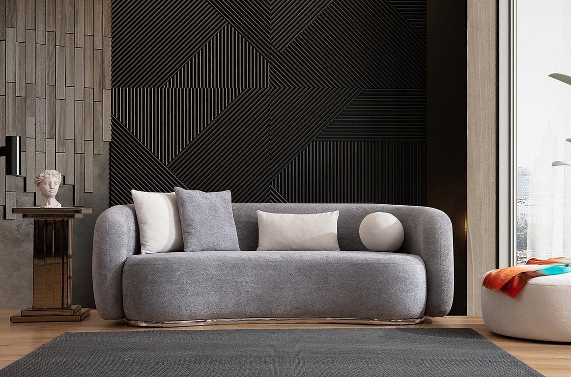 Sofa 4 Seater Upholstered Sofa Gray Textill Seat Design Fabric Modern Couch Sofas