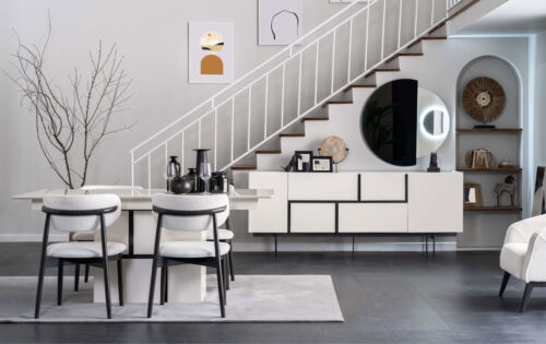 Complete e Dining room Furniture Designer Wood Dining table Sideboard 4x Chairs 7pcs
