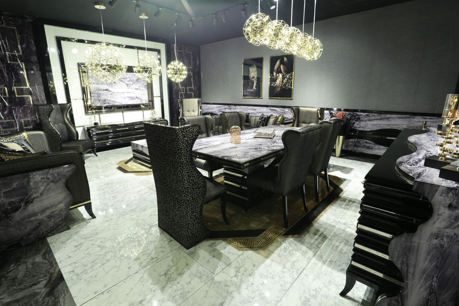 Black Dining room Set Suite Dining set Dining table 232x112cm + 6x armchairs