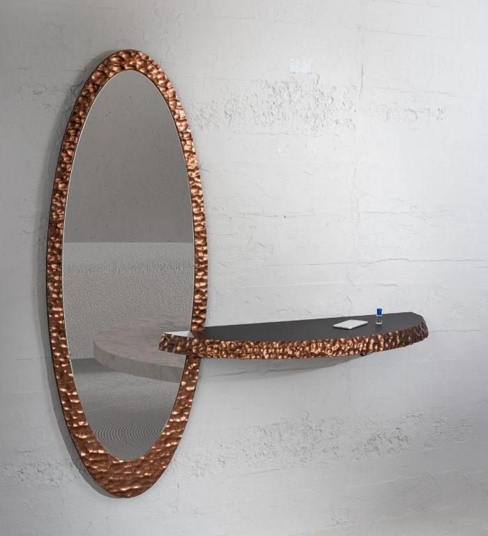 Designer Oval Mirror Luxurious Glass Mirror Stylish Shelf 2pcs