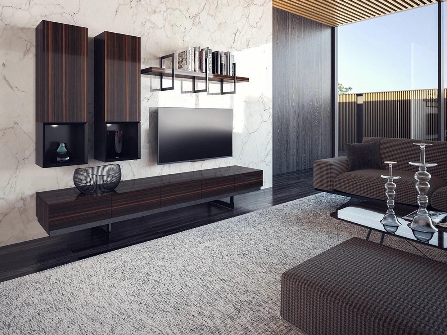 Living room set TV lowboard 2x wall cabinet Design Furnishings Modern Wall shelf