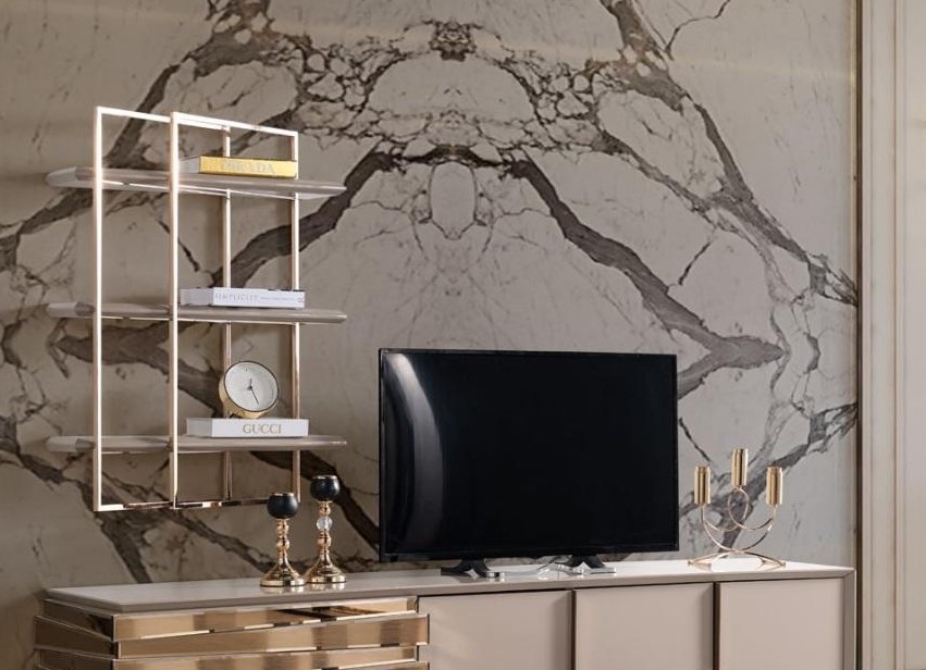 TV-cabinet Lowboard TV Stand Sideboard Beige Gold Living room Set Shelves new