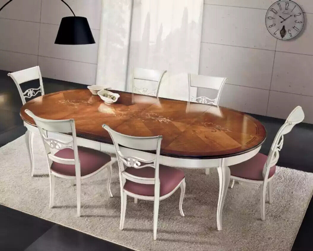 Classic r Dining table Table Wood Dining room Suite 4x Chairs Set White
