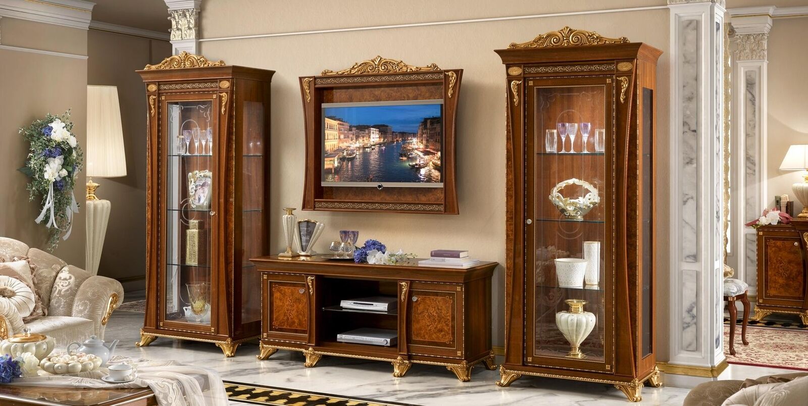 Set 4 pieces Living room TV cabinet 2x Display case tv Frame Wood Luxury Suite Group Italy