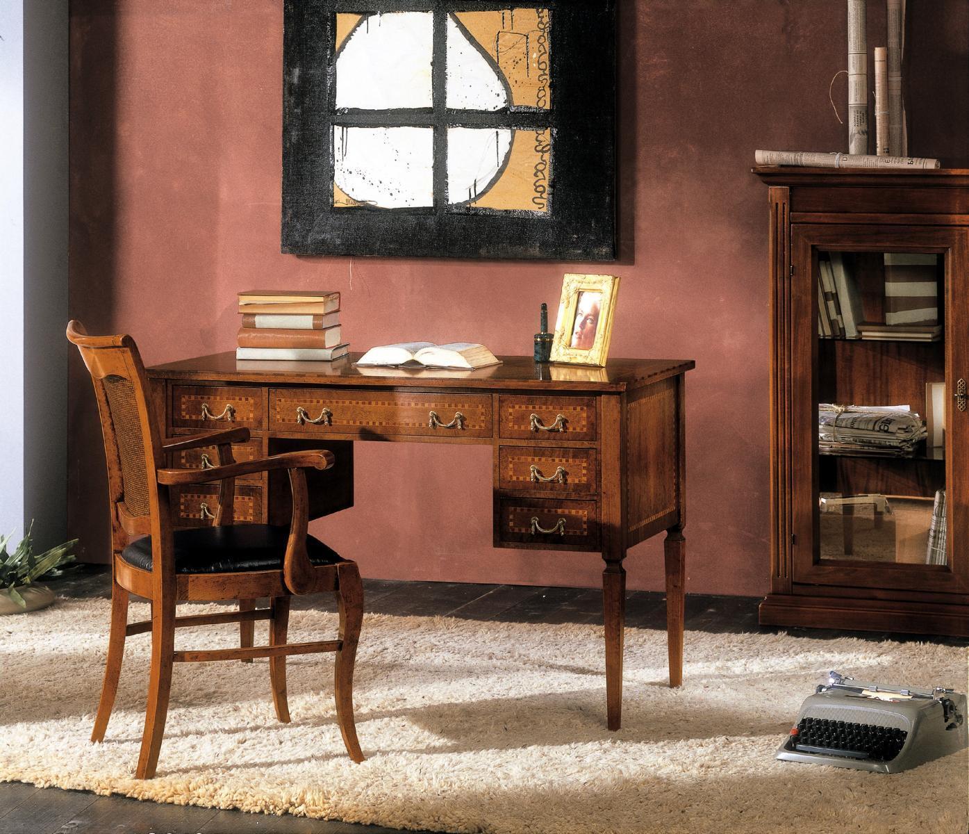 Desk Chair Wood Armrests Desk Office Furniture Italian 2pcs new